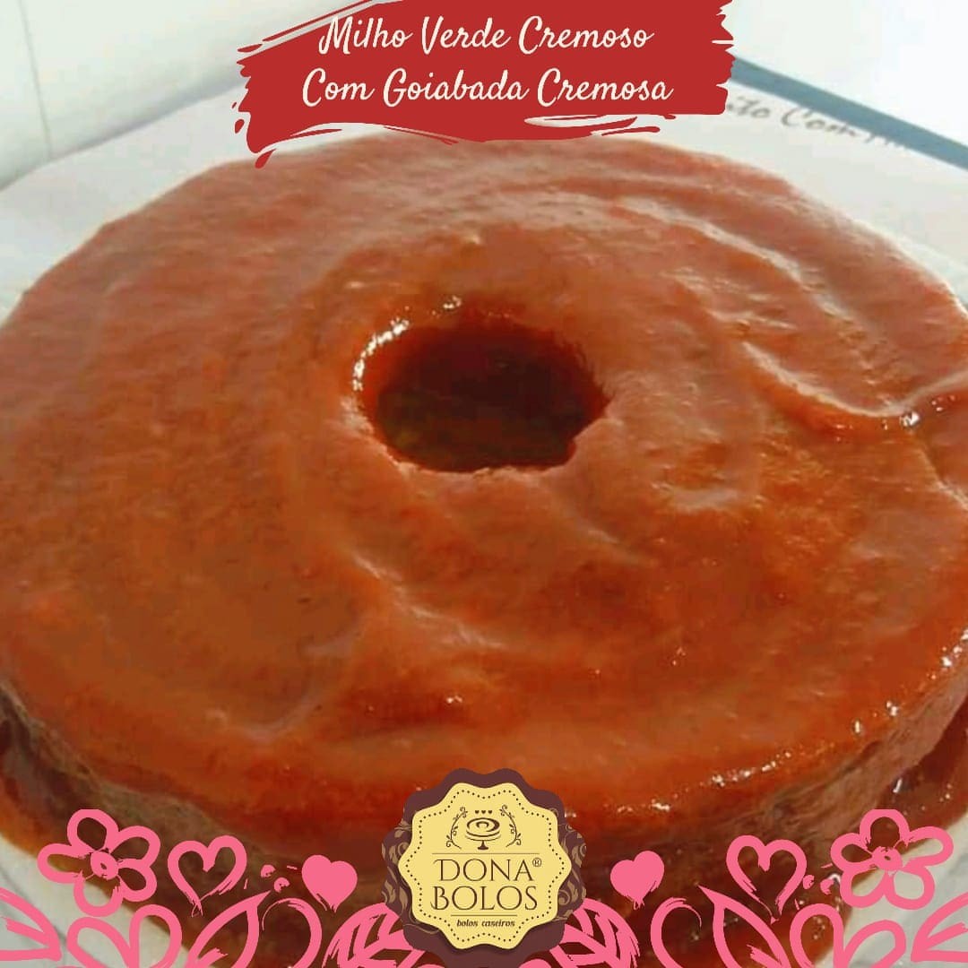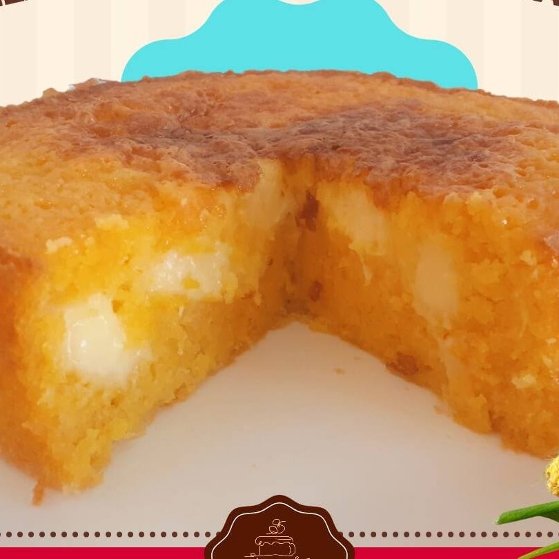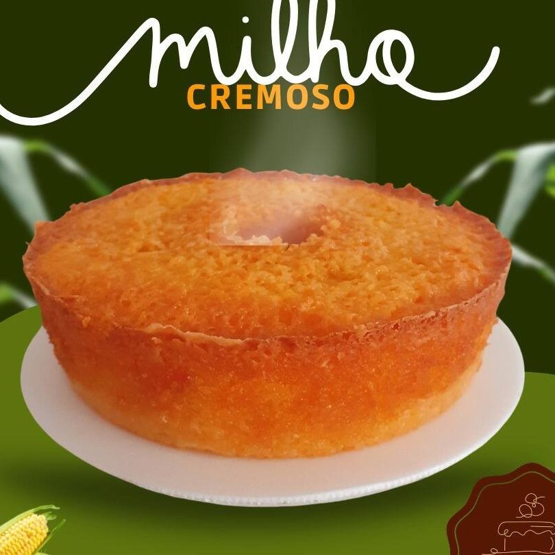 Bolo de milho cremoso artesanal com cobertura com creme de cural