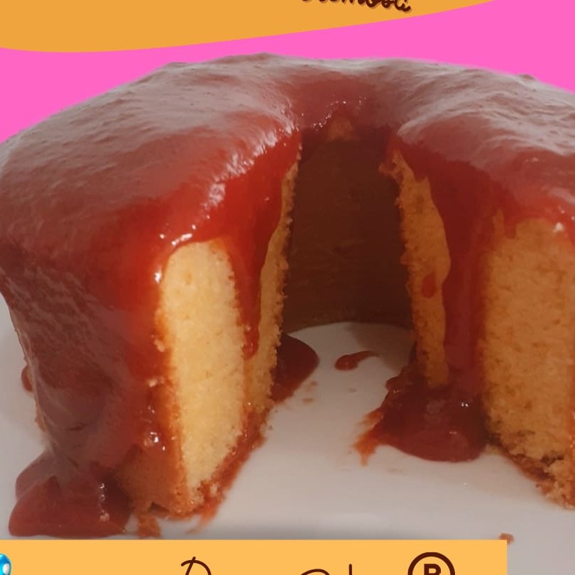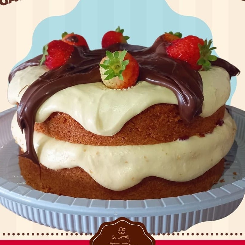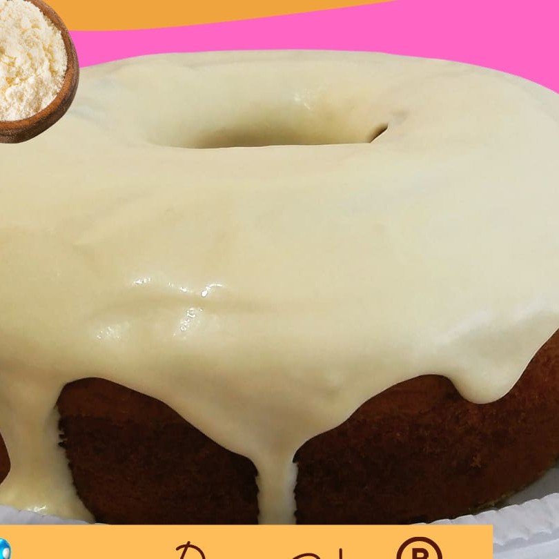Delicioso bolo fofinho de iogurte coberto com uma cremosa e saborosa cobertura de leite Ninho * cobertura vulcão enviada a parte em 2 potes de 250 ml cada