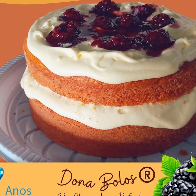 Delicioso bolo branco, molhadinho com leite de coco e leite condensado, recheado com Ninho e amora, coberto com Ninho e amora peça ja o seu irresistivel