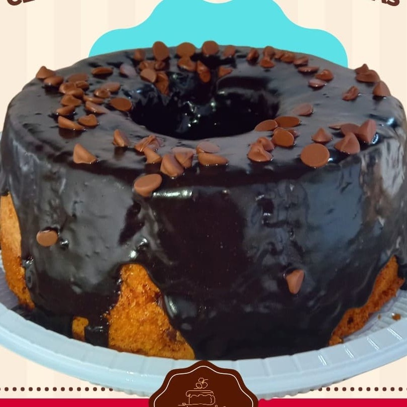 Bolo de cenoura fofinho com cobertura de chocolate 50% cacau * cobertura vulcão enviada em 1 pote de 250 ml a parte