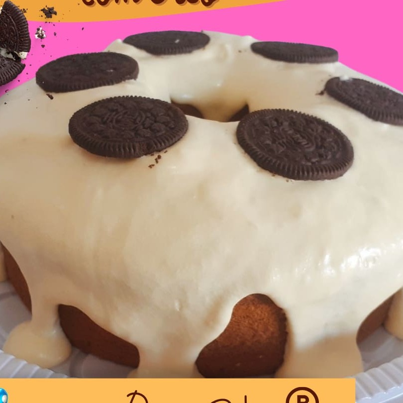 Delicioso Bolo fofinho de iogurte coberto com uma cremosa e saborosa cobertura de leite Ninho com bolacha Oreo