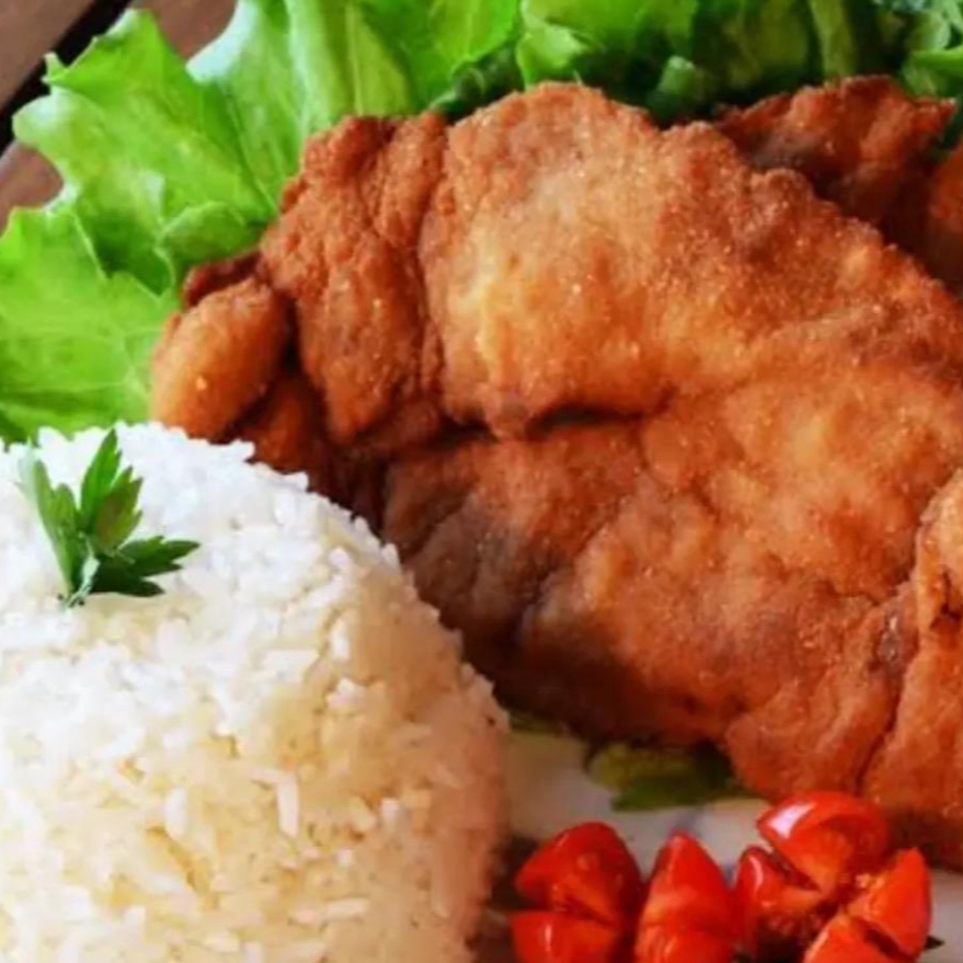 Suculento Peixe a Parmegiana com molho caseiro, queijo mussarela ,arroz, feijão, batata Frita com 1 guarnição a sua escolha.