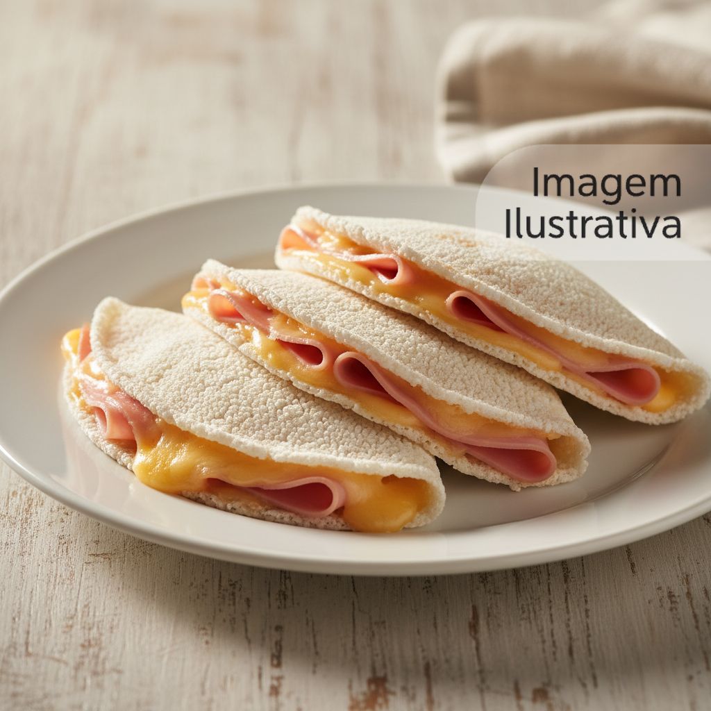 Clássica tapioca de queijo derretido e presunto suculento, perfeita para qualquer hora do dia.