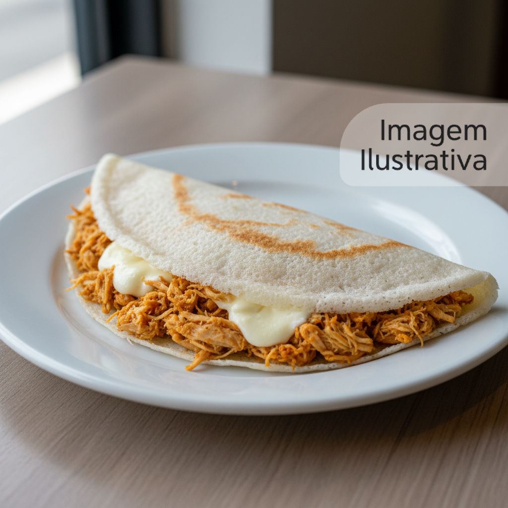 Deliciosa tapioca recheada com frango desfiado e catupiry cremoso.