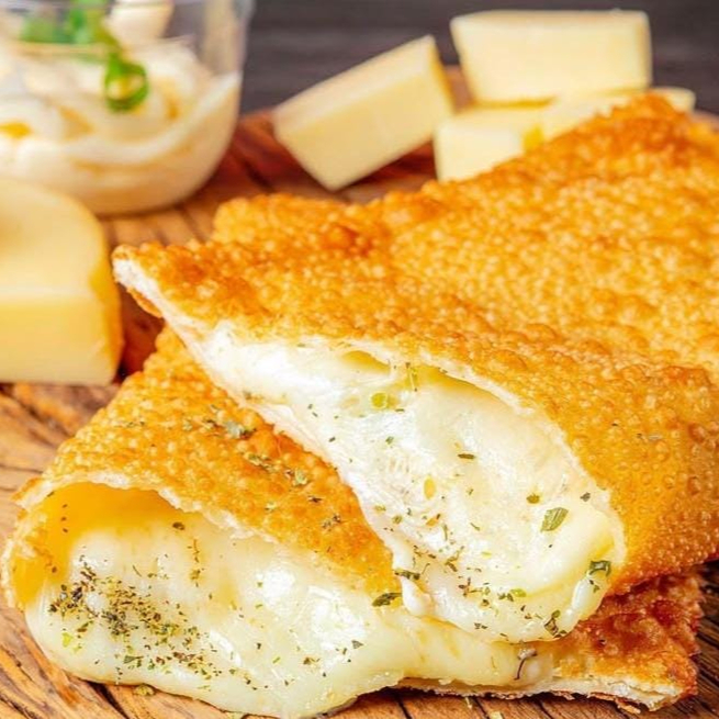 Pastel frito recheado com queijo, irresistivelmente crocante e saboroso.