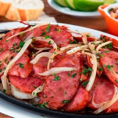 Descubra a deliciosa Porção de Calabresa Acebolada da categoria 'Porções da Casa'. Este prato é feito com generosas 500 gramas de calabresa, que são delicadamente grelhadas e depois cobertas com uma camada suculenta de cebolas caramelizadas. A combinação do sabor apimentado da calabresa com a doçura sutil das cebolas torna este prato uma explosão de sabores. Perfeito para compartilhar com amigos ou para aproveitar sozinho. Não perca a oportunidade de experimentar esta maravilha!
