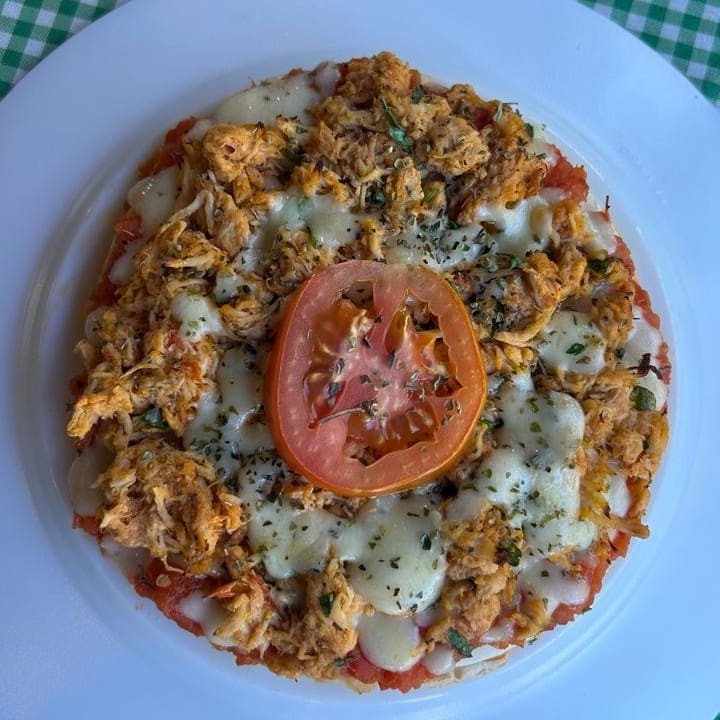 Deliciosa Pizza de Frango com Muçarela e acompanha: molho de tomate e orégano. (Congelada e Zero Glúten - Air Fryer / Forno convencional e Micro-Ondas)