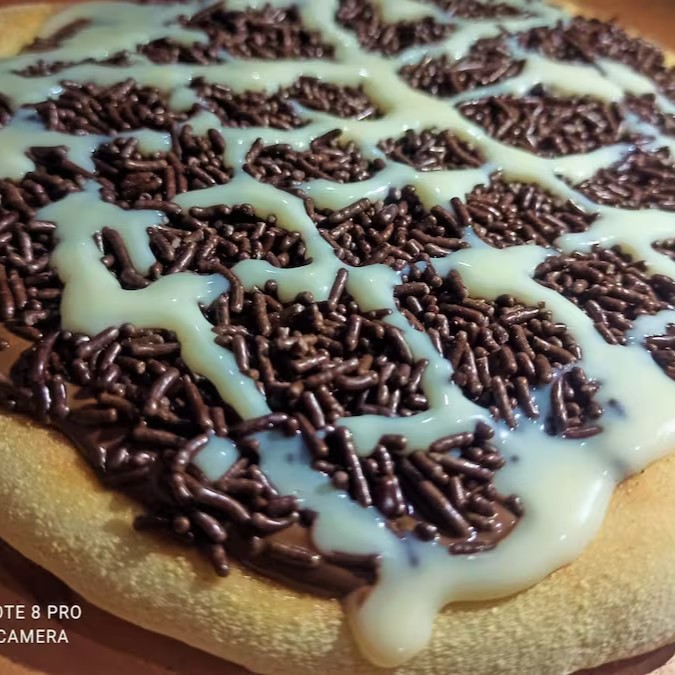 Muçarela, chocolate, granulado e leite condensado