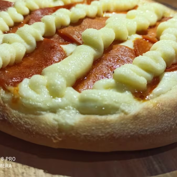 Muçarela, pepperoni e requeijão
