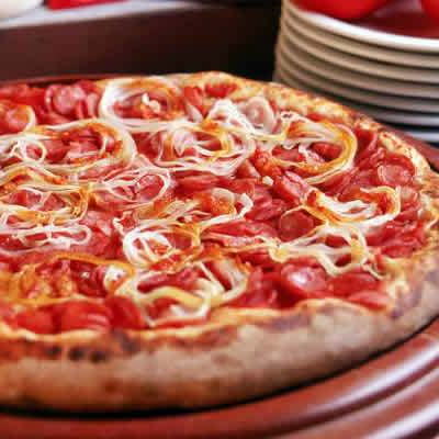 Pizza de Calabresa (8 pedaços), massa tradicional.