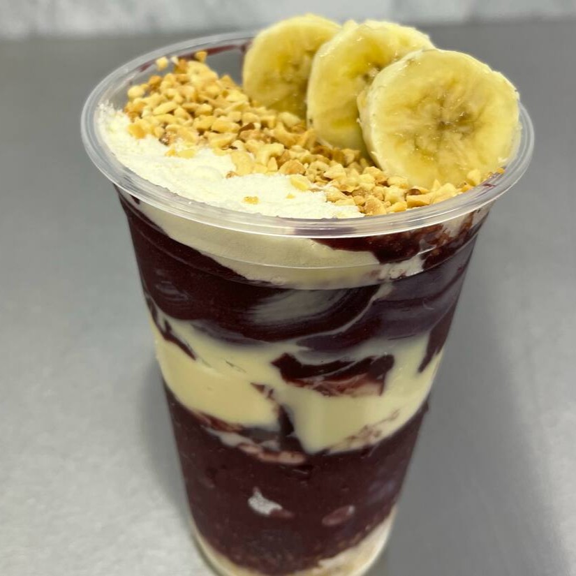 Delicie-se com o açaí em um copo de 700ml com ate três camadas de recheio, proporcionando uma experiência única e saborosa.