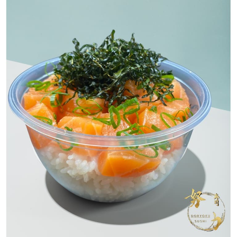 Mini Bolw de poke com 200 gramas de Shari (arroz Japonês temperado), 120 gramas de salmão e um Topping á sua escolha!