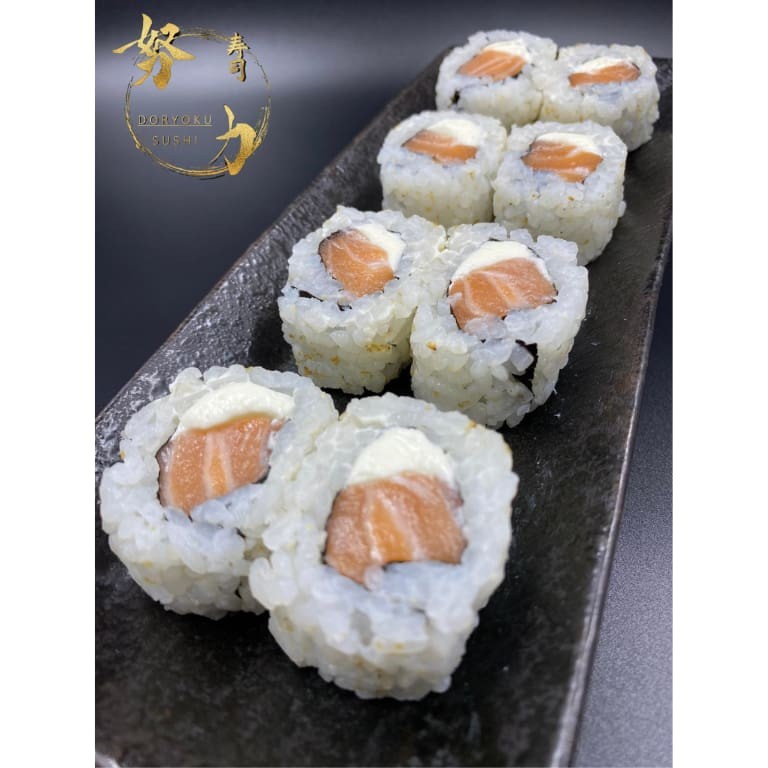 8 unidades de sushi enrolado com salmão e cream cheese