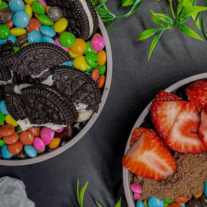 Um delicioso açaí recheadinho da sua escolha + um milk-shake bem saboroso ( ambos copos de 500ml).
