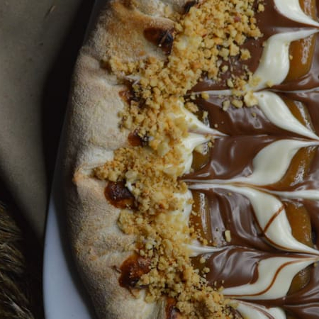 Mussarela, bacon, cheddar, catchup, mostarda e batata frita.