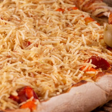 Massa tradicional, molho de tomate caseiro Dribix, Calabresa e cebola