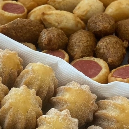 Delicie-se com nosso combo de 100 salgados e 50 pasteis, perfeito para compartilhar com amigos e família.