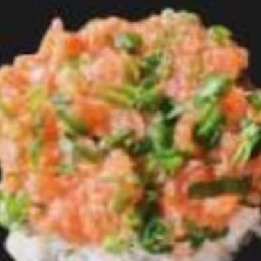 8 unidade de Dyos de Salmão cru envolto no arroz, cream cheese e salmão batido com cebolinha por cima.