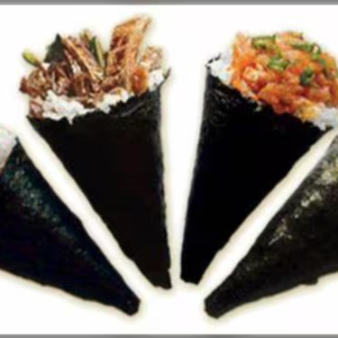 1 Mini temaki 120g, 4 unidades de Sashimi, 4 unidades Uramaki