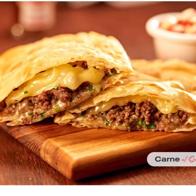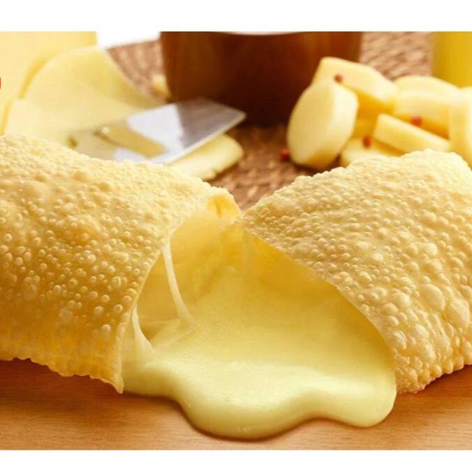 Pastel de Carne com Queijo, frito na hora e fresquinho.
