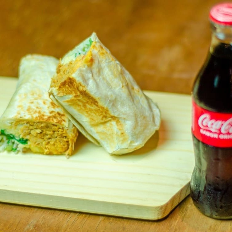 Para fomes vorazes, apresentamos nosso Combo: 1 Burrito (1/2 kilo) e 1 Coca Cola. Delicie-se com um generoso Burrito, recheado com ingredientes de sua preferência, cuidadosamente embalados em uma tortilha suave. Este burrito volumoso é ideal para satisfazer apetites robustos. Para acompanhar, escolha uma Coca Cola refrescante e borbulhante, a bebida perfeita para complementar sua refeição. Neste combo, combinamos sabor e satisfação em uma única oferta. Ideal para quem deseja uma refeição completa e satisfatória.