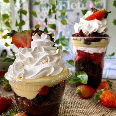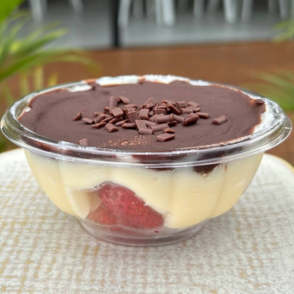Brigadeiro de Ninho cremoso, morangos frescos, massa branca leve e chantilly. Uma combinação delicada, com frescor, suavidade e sabor na medida certa.