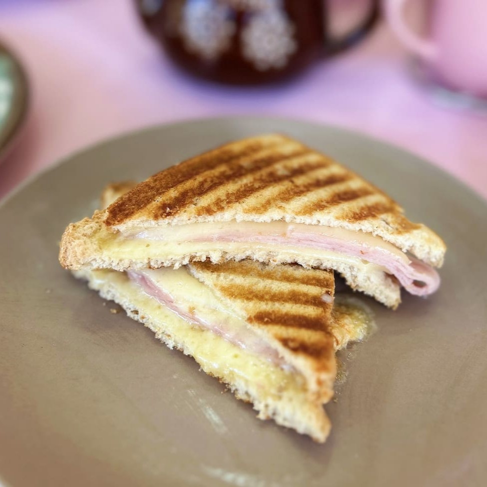 Pão de forma, requeijao, presunto e queijo prensado