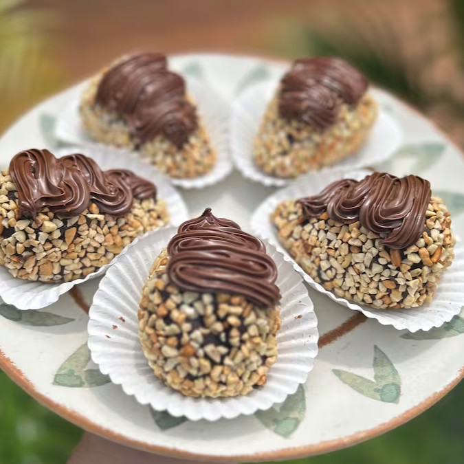 Morangos frescos e suculentos, cuidadosamente envolto em um brigadeiro gourmet, macio e saboroso. A textura crocante das castanhas adiciona um contraste delicioso a esta combinação já perfeita. Para finalizar, uma generosa camada de Nutella.