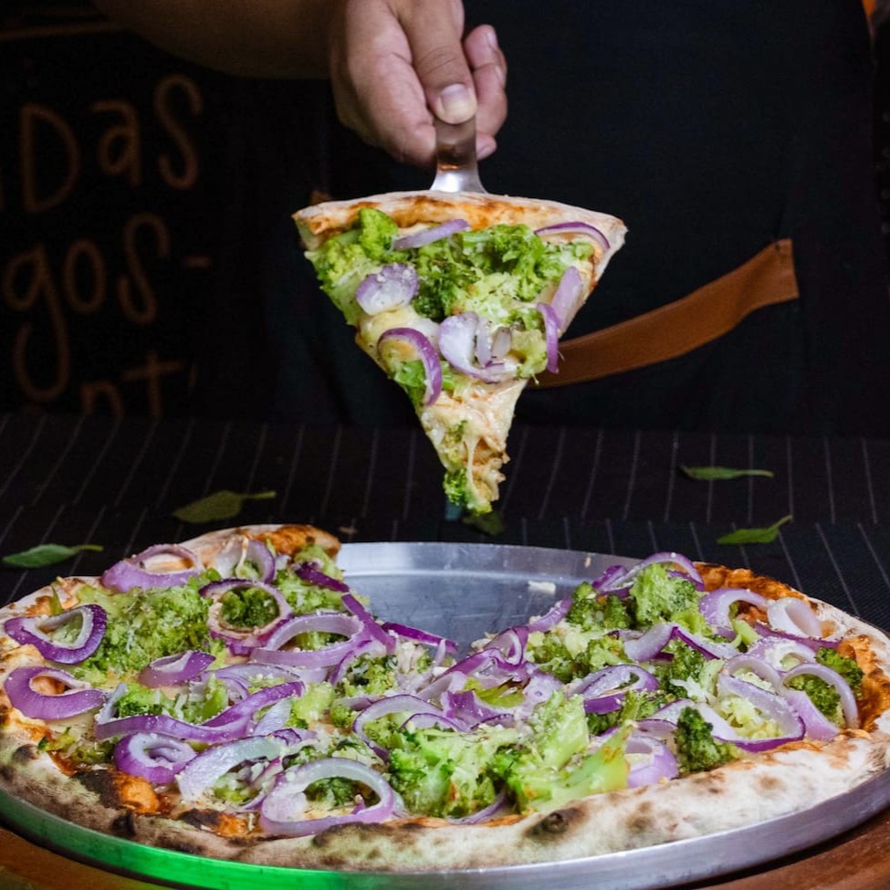 Muçarela, brocolis, cebola roxa e parmesão