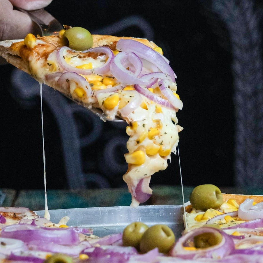 Muçarela, milho e cebola roxa