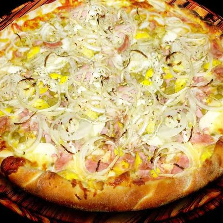 Calabresa fatiada, molho de Tomate, e Cebola( obs sem Mussarela)