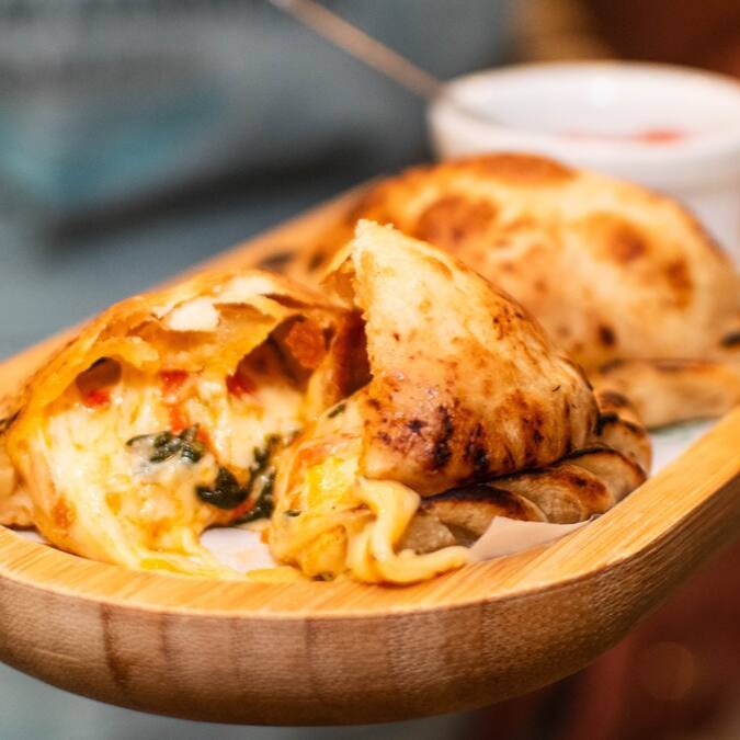 Empanada de Palmito Pupunha, molho pelati san marzano, manjericão fresco, especiarias, parmesão e muita mussarella!!!