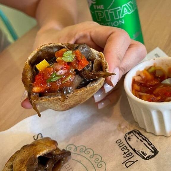 Preparamos uma massa integral a base de azeite e recheamos com um mix de cogumelos, paris, shitake e shimeji, refogados com azeite, cebola roxa e especiarias.