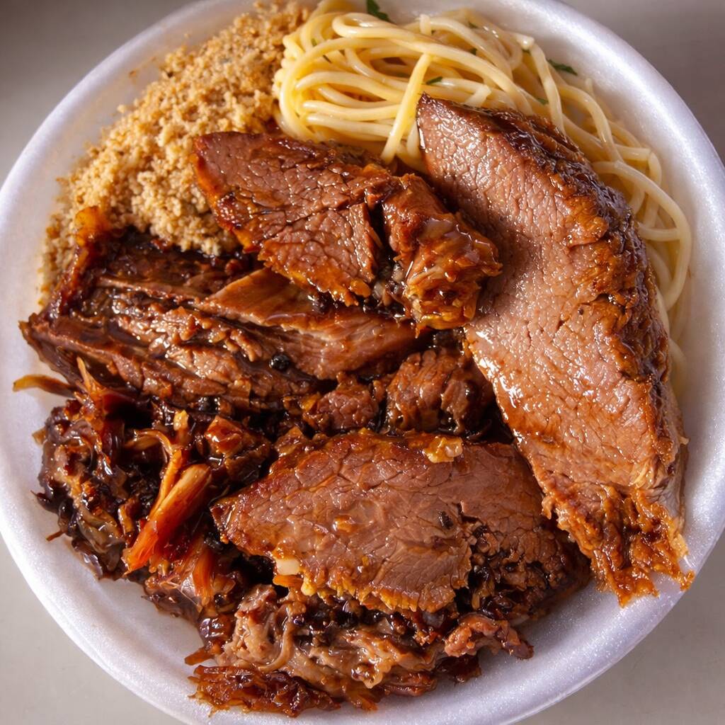 Costela no bafo desossada, Cupim no bafo. Acompanha: Arroz, feijão, farofa crocante e mais um acompanhamento á escolha.