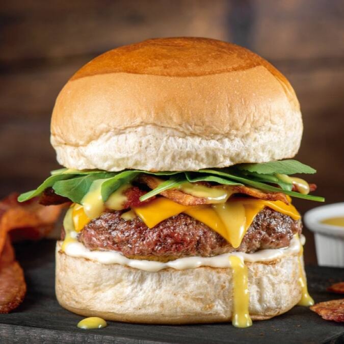 Hambúrguer artesanal, cheddar, ovo, alface, tomate e molho especial.