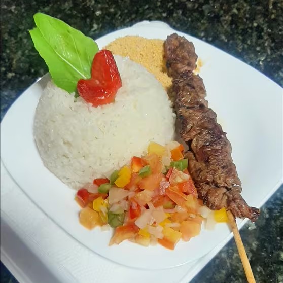 Arroz, Feijão, Vinagrete, Farofa, molho de alho, e Batata Rústica - Coração