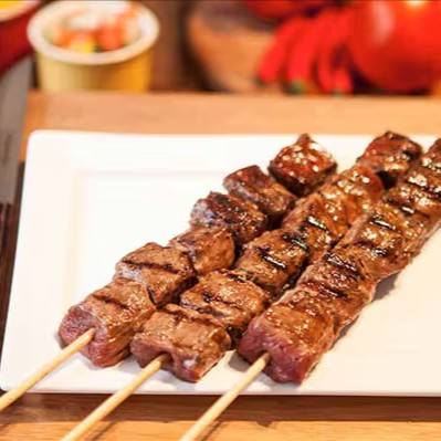Arroz, Feijão, Vinagrete, molho de alho, Farofa e Batata Rústica - Cordão de Mignon