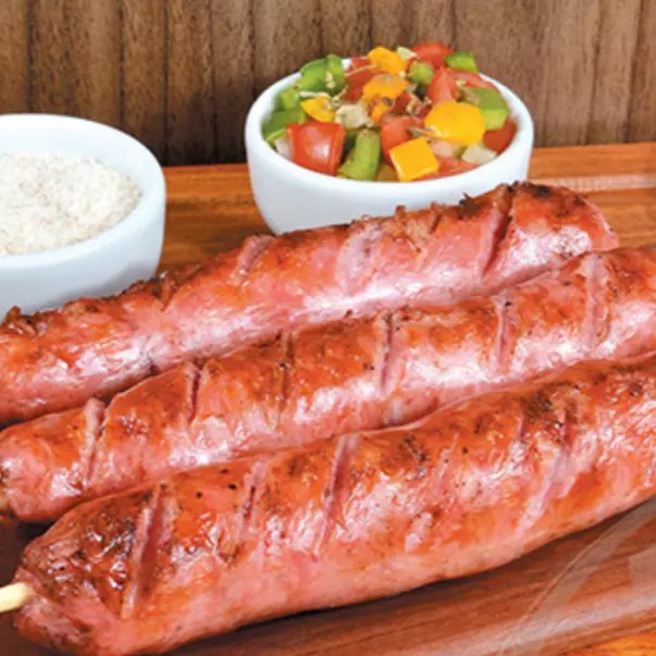 Delicioso espetinho de linguiça suculenta, perfeito para o seu churrasco. Sabor autêntico e qualidade garantida em cada mordida!