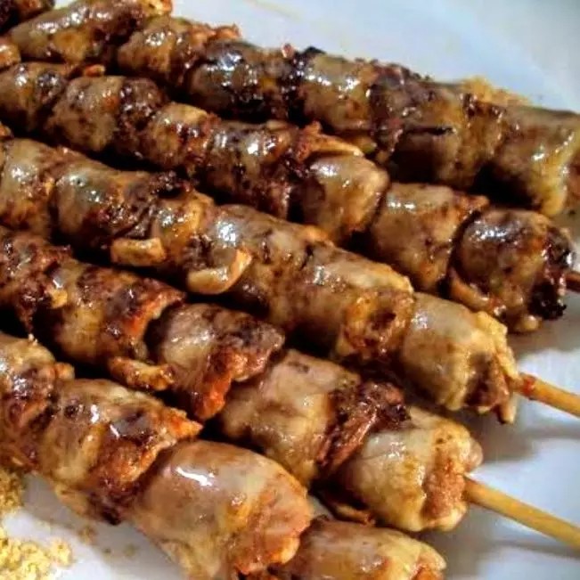 Delicioso espetinho de coração: sabor inigualável, suculência perfeita. Ideal para churrascos e momentos especiais. Experimente o autêntico sabor brasileiro!