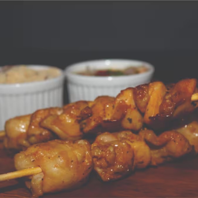 Corações de frango suculentos, grelhados na brasa até o ponto perfeito. Acompanha nossa farofa especial e vinagrete carioca.