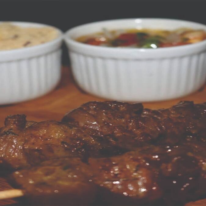 03 Espetos de Carne + 01 Pão de Alho + 01 Farofa Pequena + 01 Vinagrete Carioca Pequena.