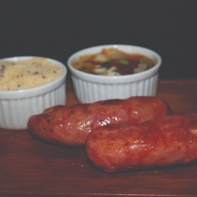 Linguiça de qualidade e no ponto perfeito, combina perfeitamente com nossa farofa e vinagrete carioca.