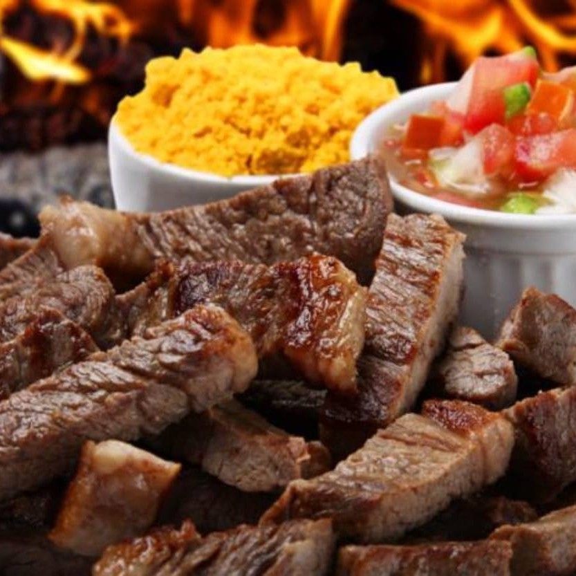 Acompanha fritas, arroz, feijão,, vinagrete e farofa - Feito na brasa