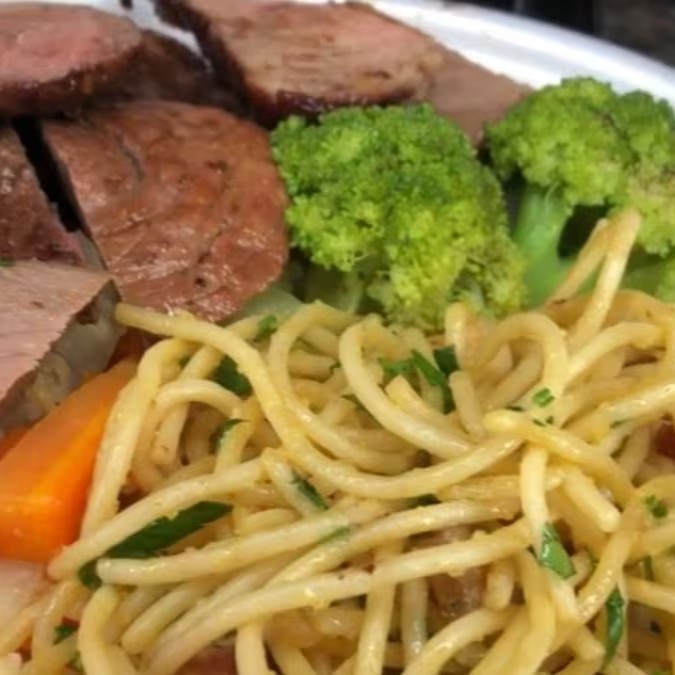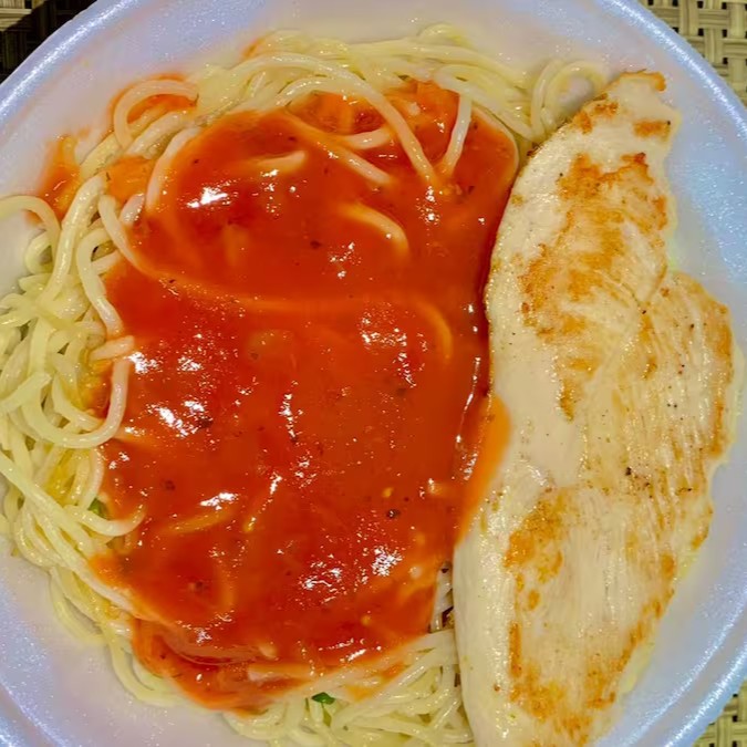 Descubra o prazer de saborear o nosso Espaguete ao Sugo de tamanho médio. Este apetitoso prato é acompanhado por um suculento filé de frango cuidadosamente grelhado até a perfeição, realçando seu sabor único e irresistível. Uma combinação que promete satisfazer o seu paladar com um sabor autêntico e caseiro. Aprecie cada garfada dessa deliciosa marmitex, feita com amor e ingredientes de alta qualidade para oferecer a você uma refeição memorável. Um prato simples, mas cheio de sabor, que irá deixar seu Dia ainda mais especial.
