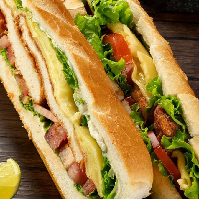 No corte boquinha de anjo, esse lanche combina filé de frango empanado, mussarela, alface e patê de alho, simples e delicioso.