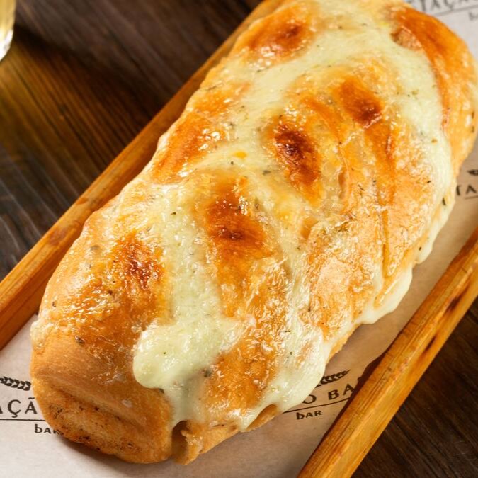 Pão de alho com recheio de mussarela derretida, quentinho e irresistível, do jeito que todo mundo ama.