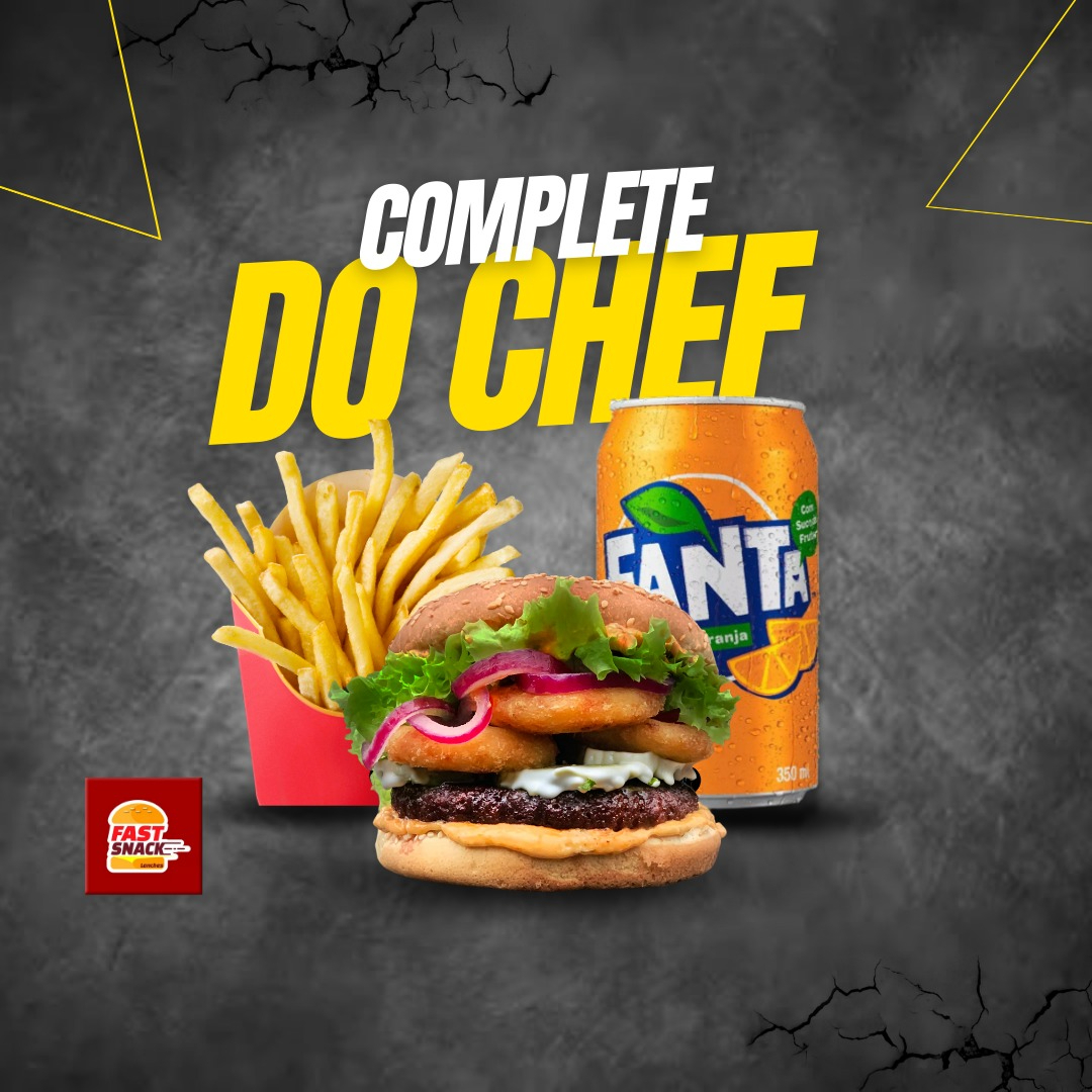 608) Complete Do Chef + Fanta Laranja 350ml + Fritas