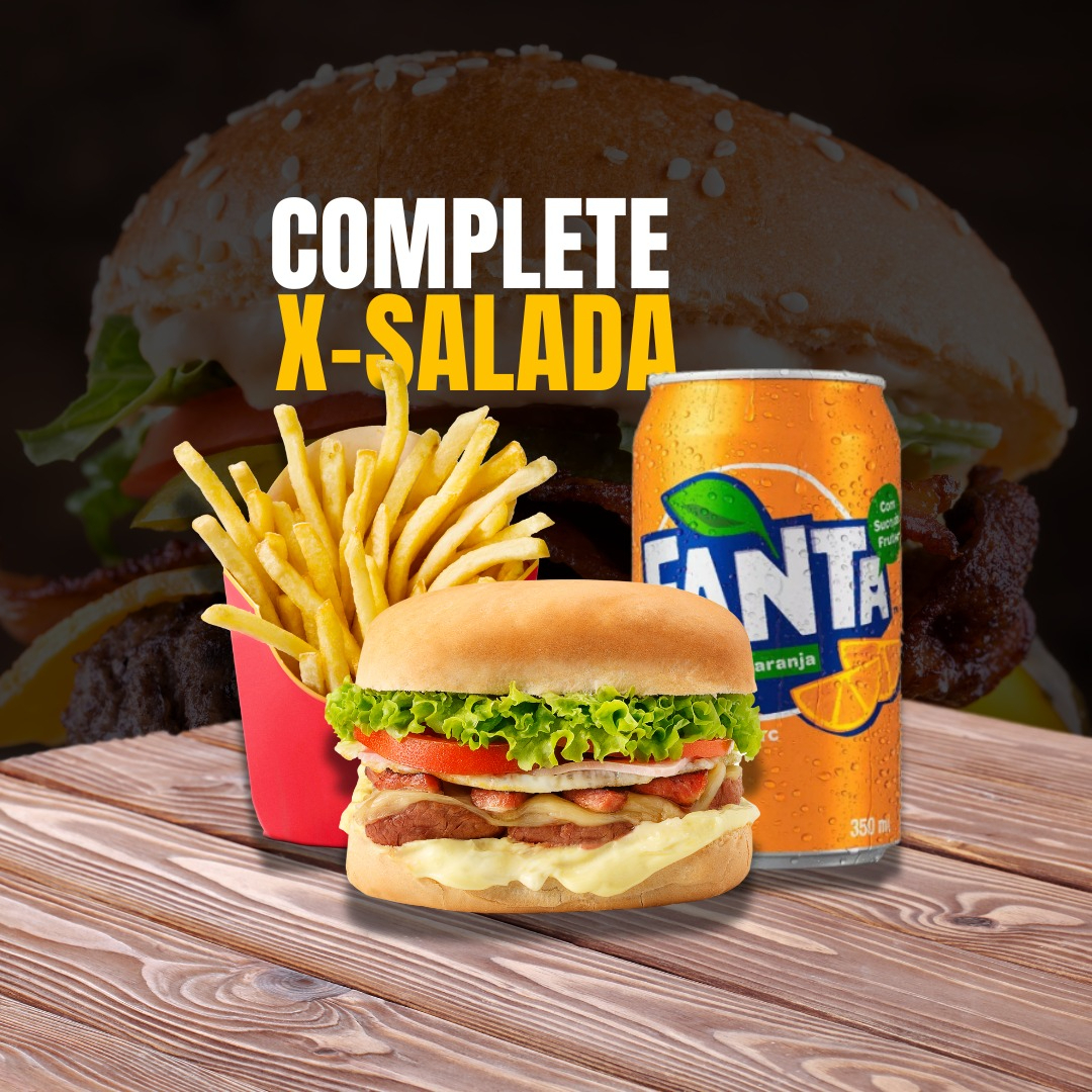 600) Complete X Salada Snack 90g+fanta Laranja Lata 350ml+fritas