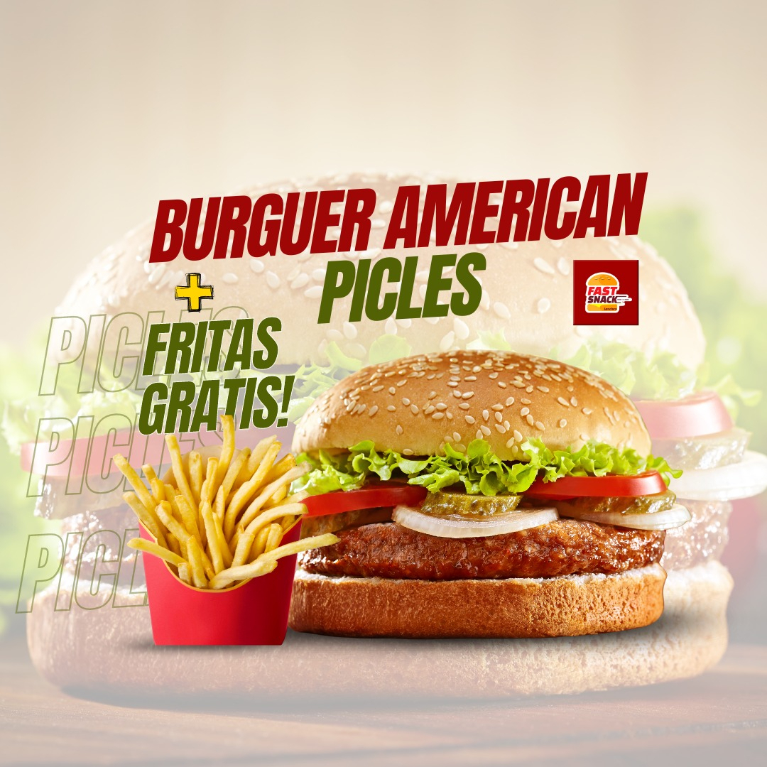 Burger American Picles + Batata Fritas Grátis