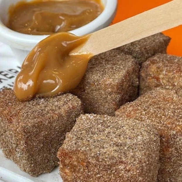 6 unidades de dadinho de tapioca empanado no açucar com canela.